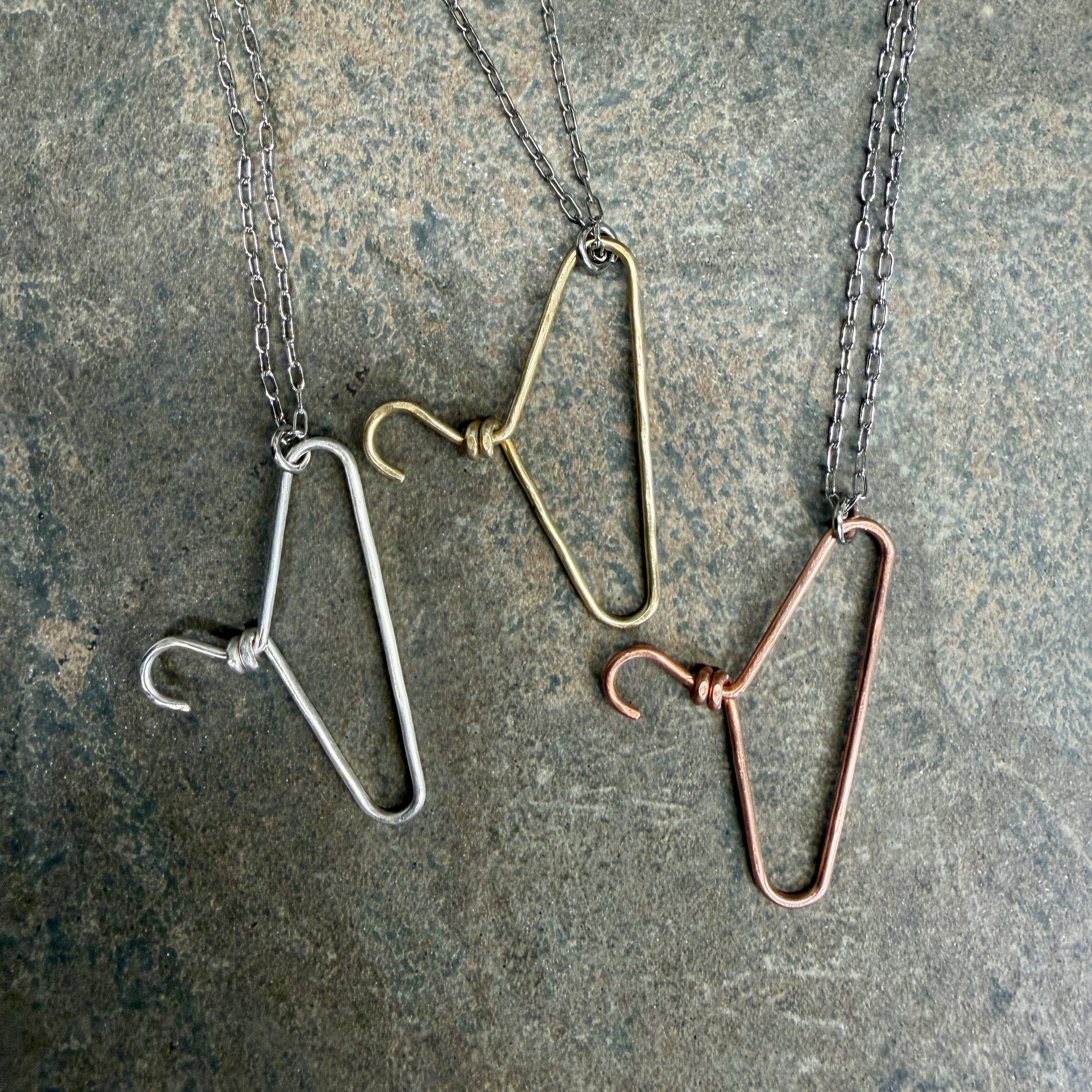 Miniature Coat Hanger Necklace, Choice of Sterling, Copper, Brass